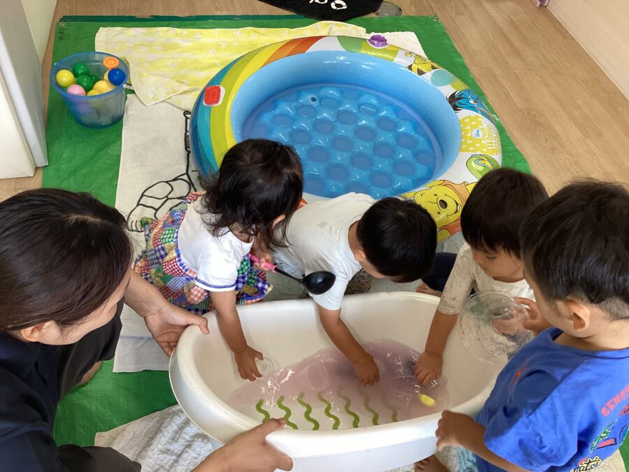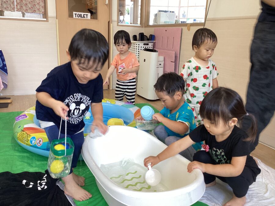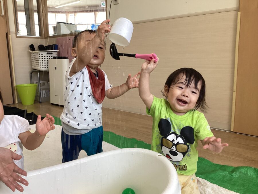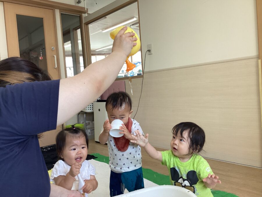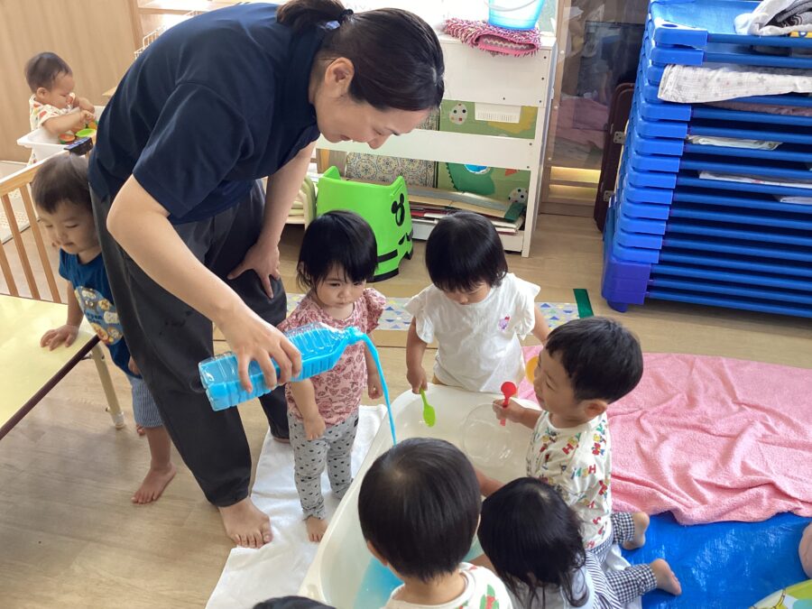 先ほどのおままごと遊びの続きを、お水でも楽しむ様子が見られました