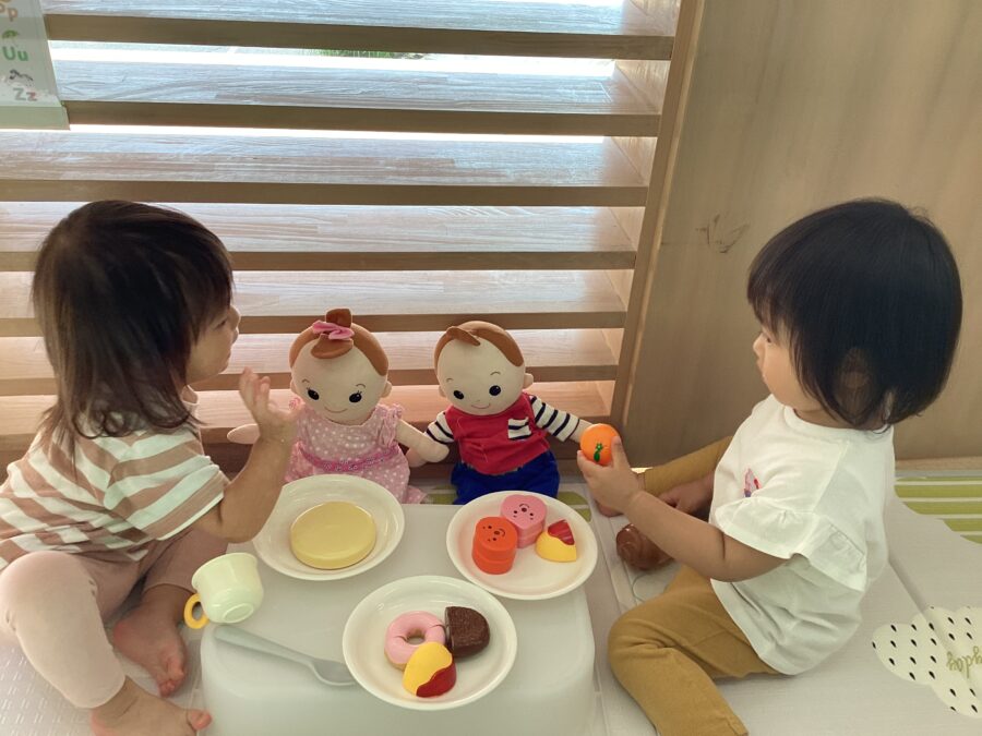 お人形さんにご飯をあげたり、着替えや寝かしつけをしてあげたりと、たくさんお世話をしてくれました💕