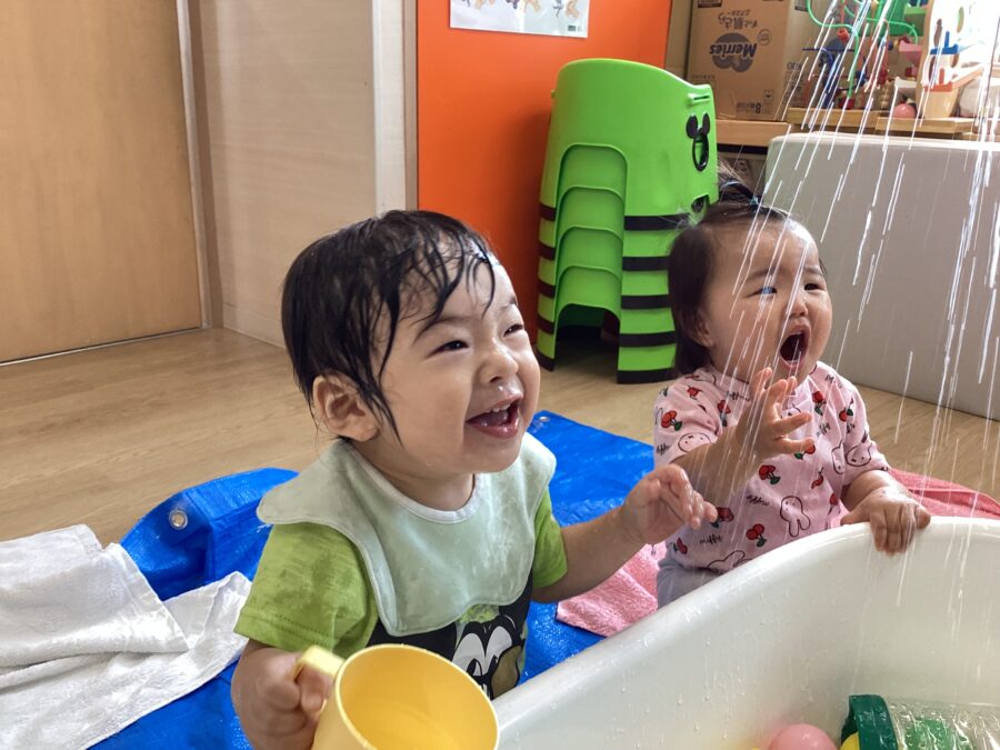 五感を刺激しながら、水の感触や冷たさ、気持ち良さをご機嫌で楽しんでいます😄