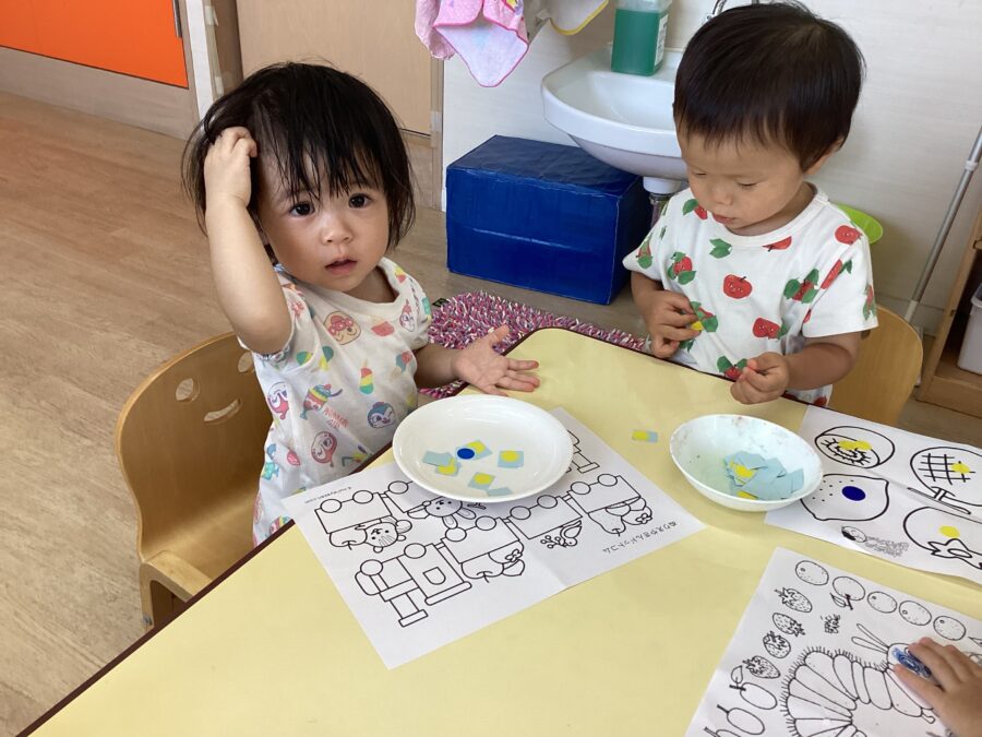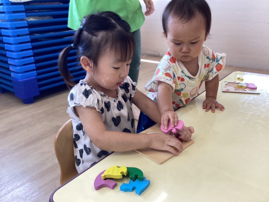 お部屋ではお人形遊びやパズル、シール貼りをして遊びました。