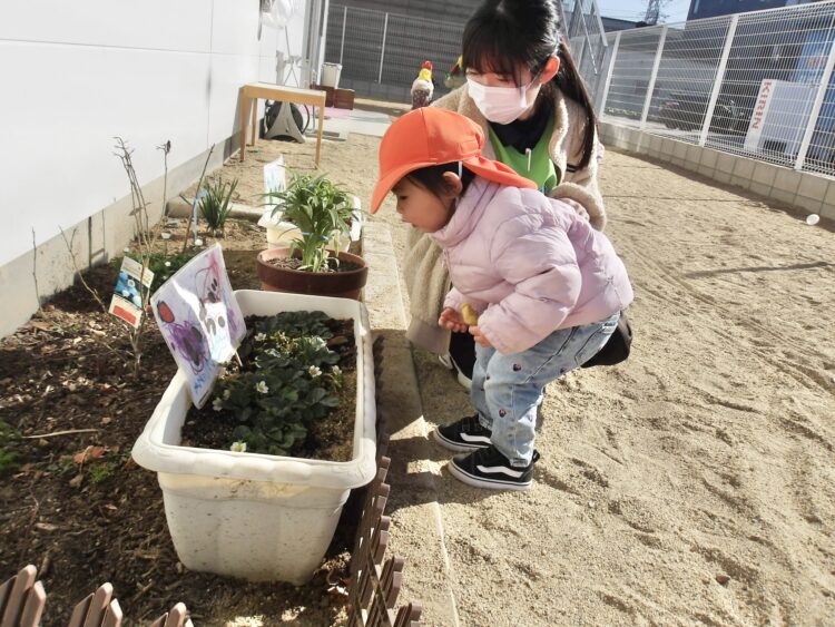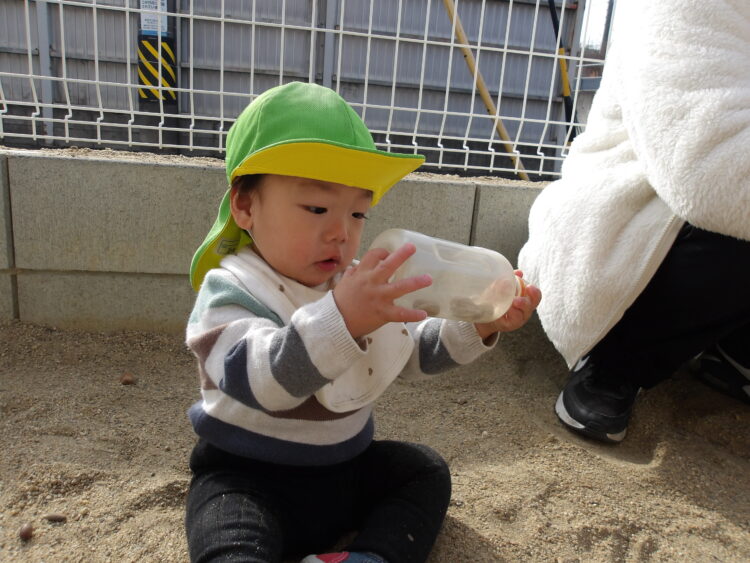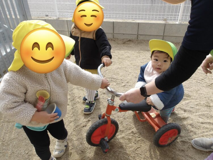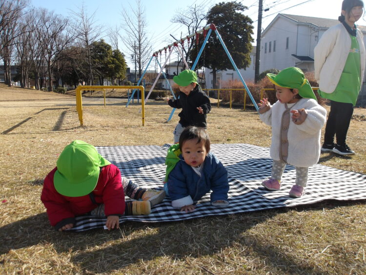 今日は、乳児クラスのみんなで園庭で遊びました![]()
