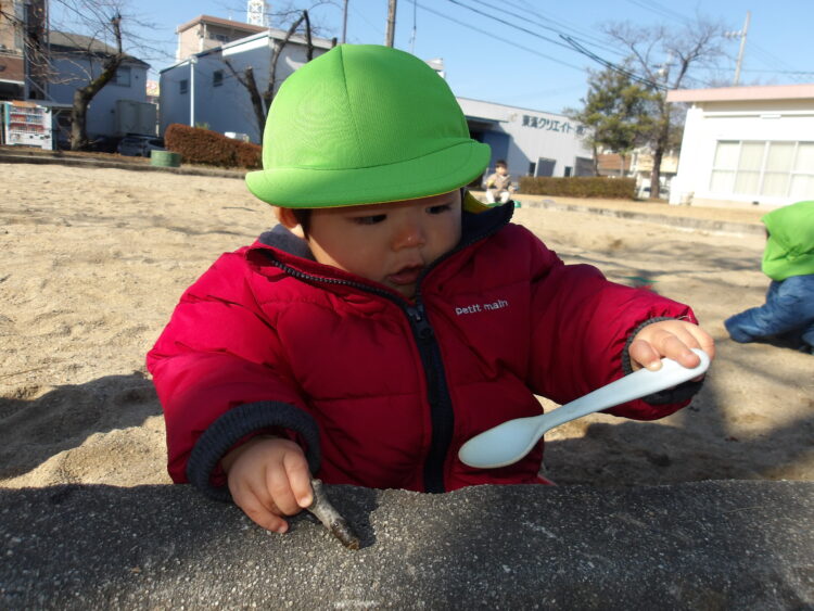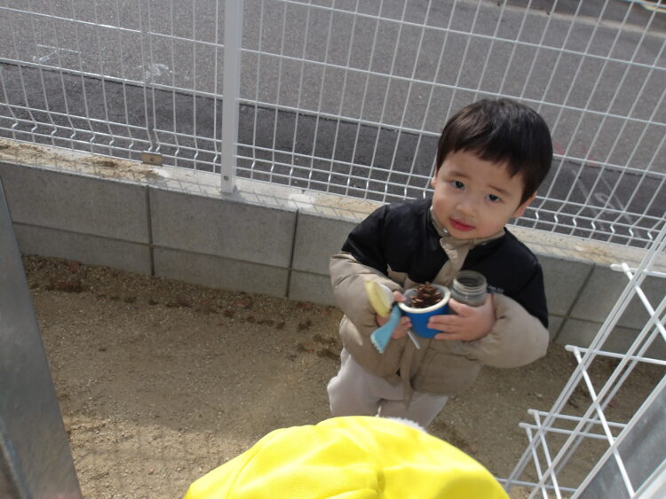 ひよこ組さんも工事ごっこが始まると、近寄って見に行っていました![]()