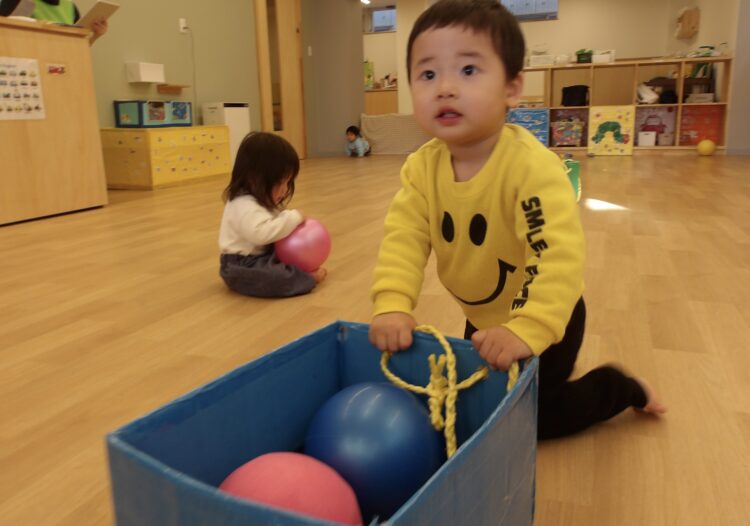 ひよこ号にボールを入れたり、中に入って引っ張ってもらったりして遊びました
