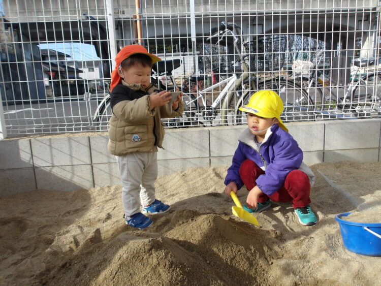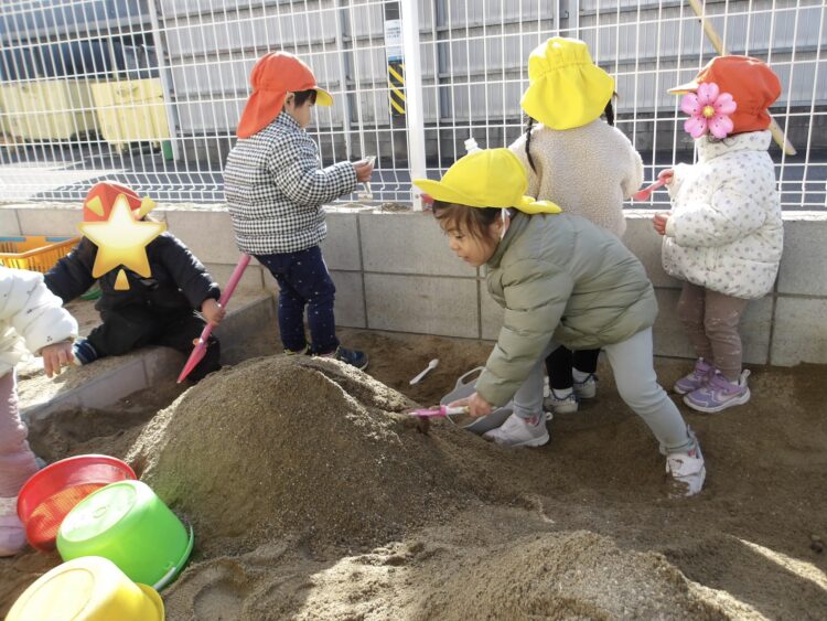 砂場で大きなお山を作りました