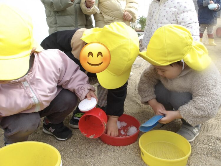 「つめたい!」と言いながらも、みんな嬉しそうに雪を触っていました❄️