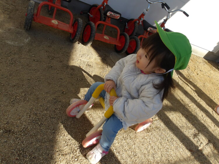四輪車に乗ったり、砂場での宝探しごっこが大人気でした😆