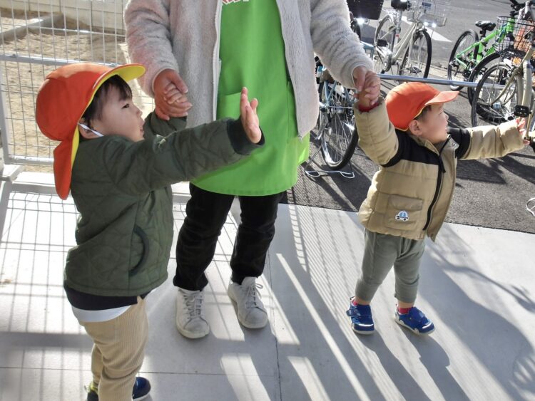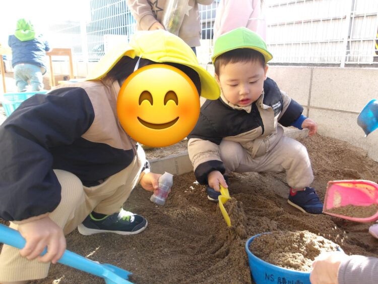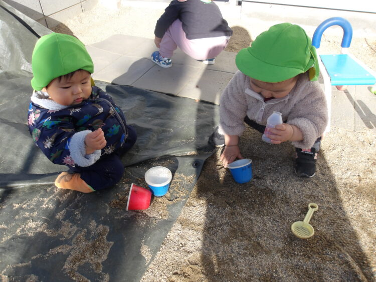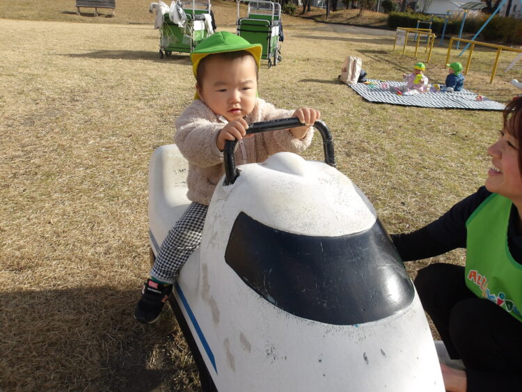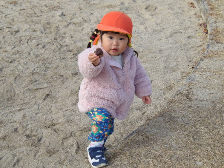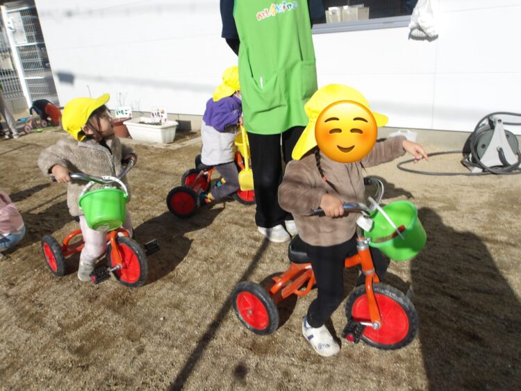 寒さに負けずにみんな元気に走ったり、三輪車をしたりと好きな遊びを見つけて楽しんでいました![]()