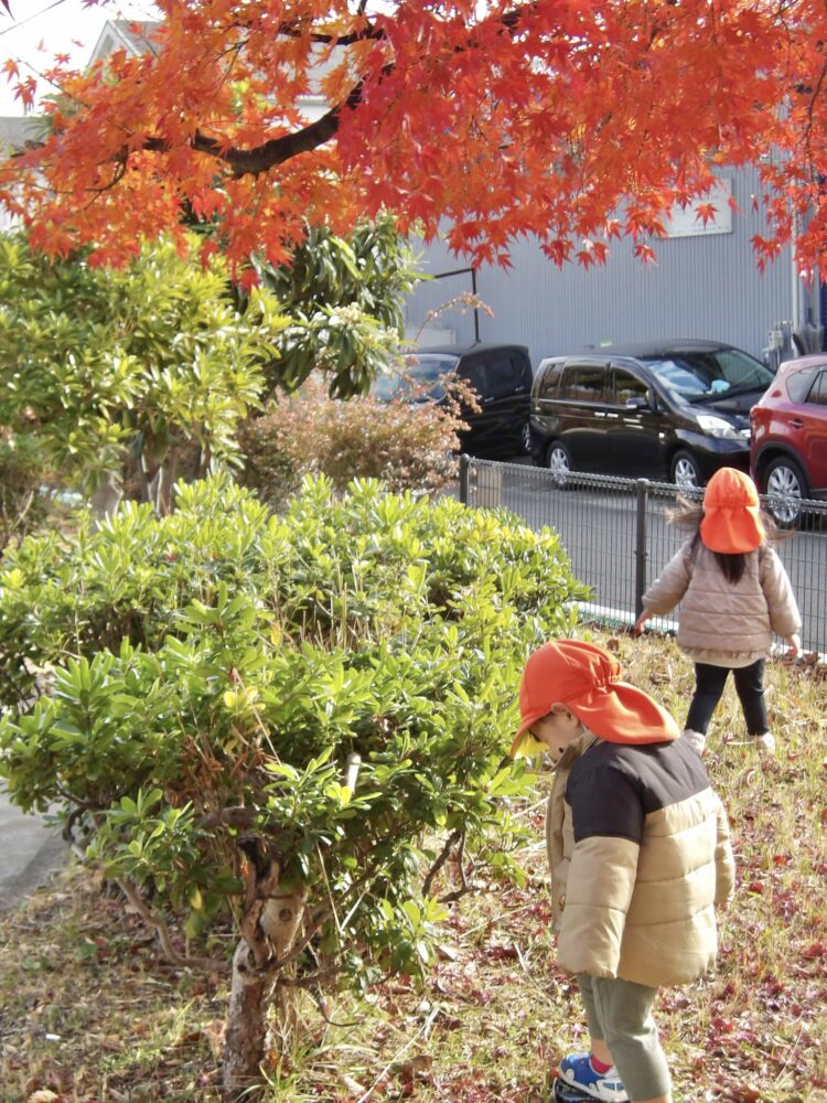 あひる組さんは、木や落ち葉のエリアを探検するのがお気に入り⭐️