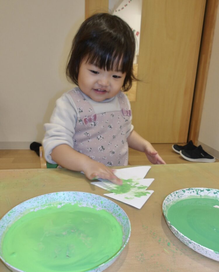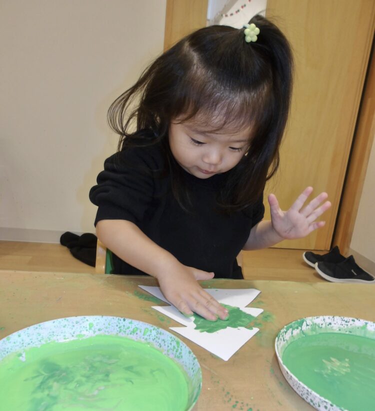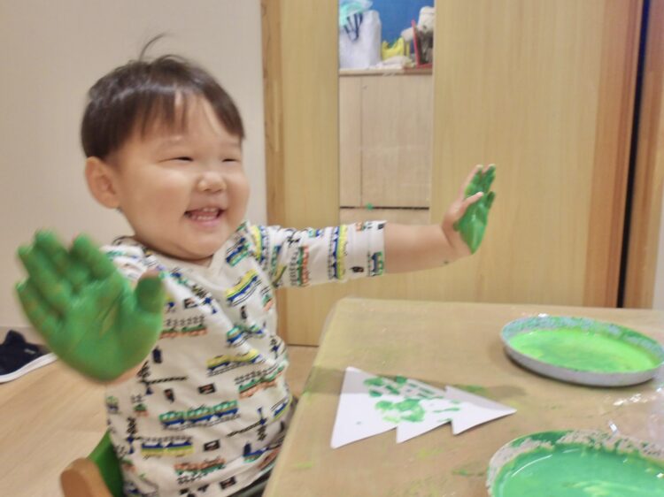 大人が手のひらに絵の具を塗って手型をとったことはありましたが、