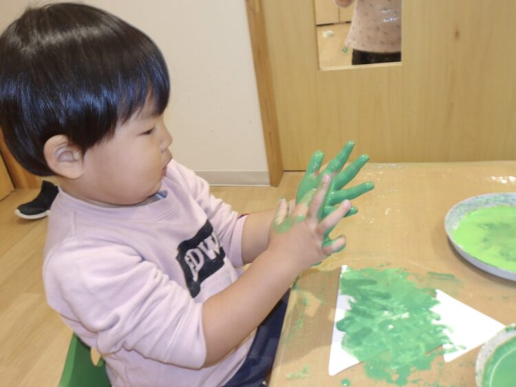 手が緑に染まると「うわぁ〜!」と眺めていました😁