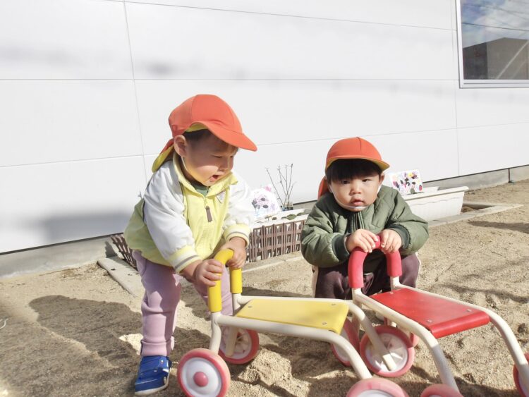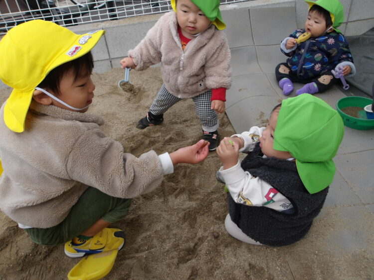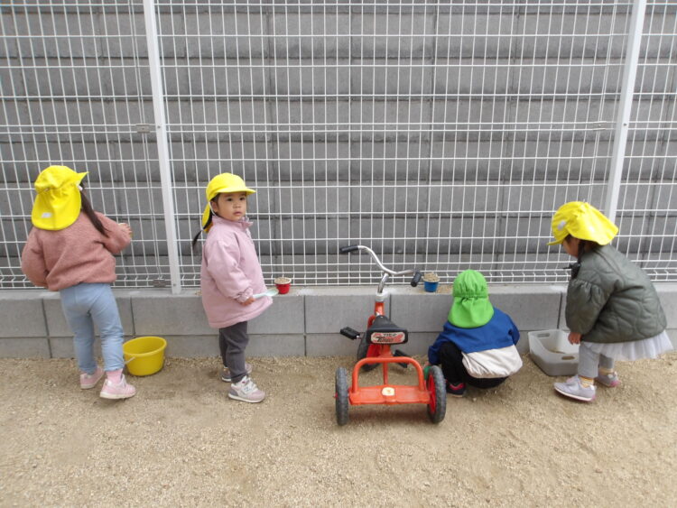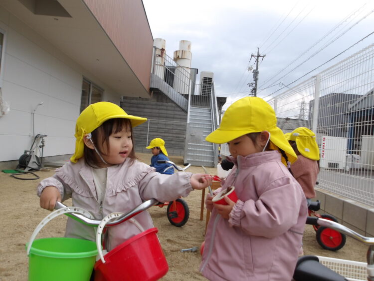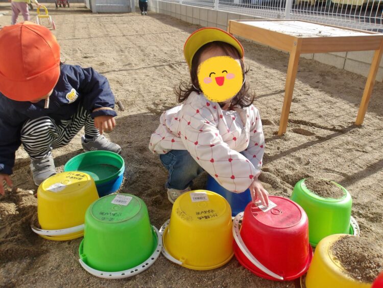 園庭に出ると、保育士より先にみんなのおもちゃを砂場に運んで準備をしてくれたお友だちがいました!ありがとう❣️