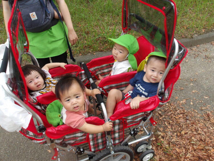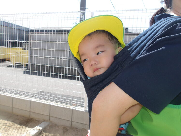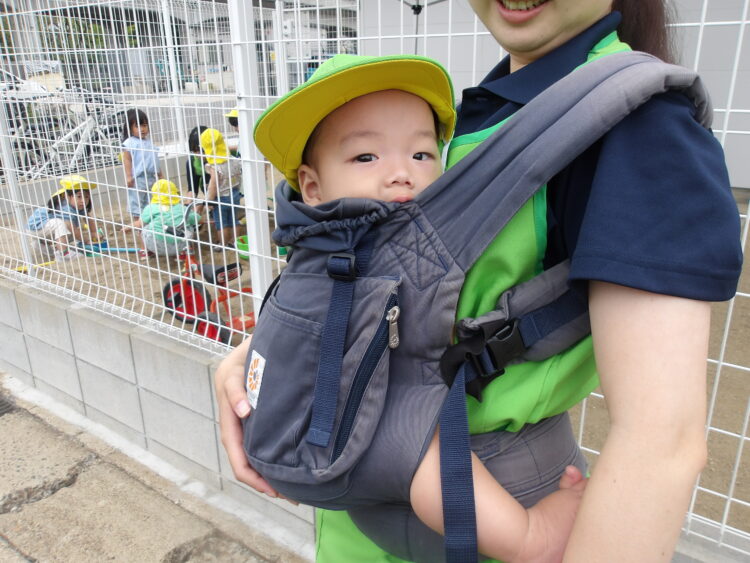 その後はみんなで園周辺をお散歩しました。カートに乗ったり、保育士の抱っこで周りの景色をキョロキョロと興味津々に見ていました![]()