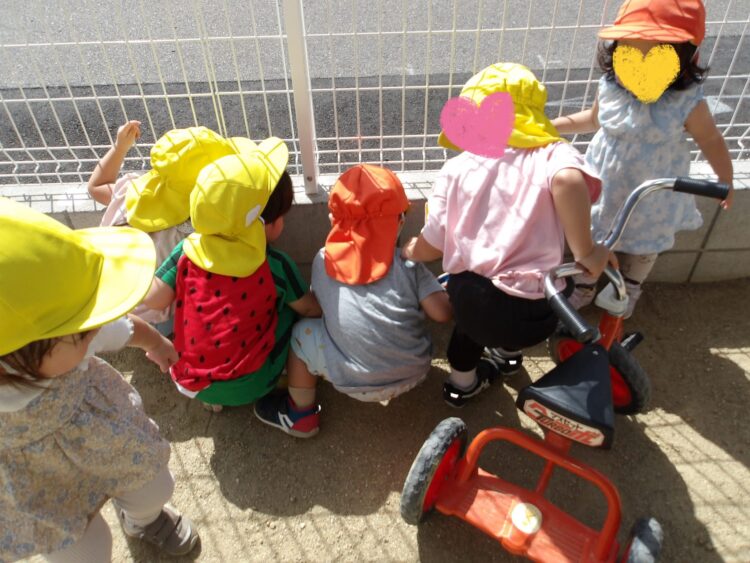虫に乗り物にお花…発見いっぱいのお外遊びになりました![]()