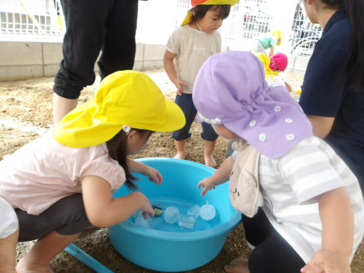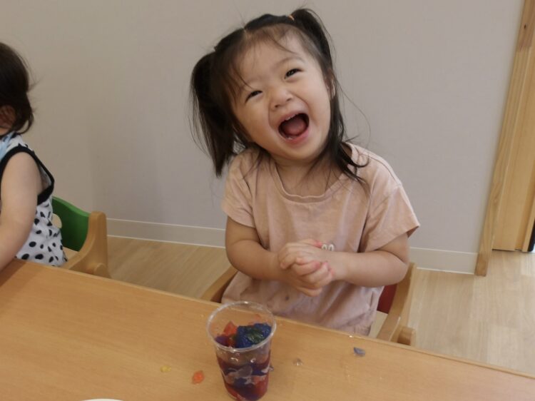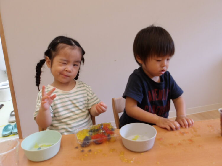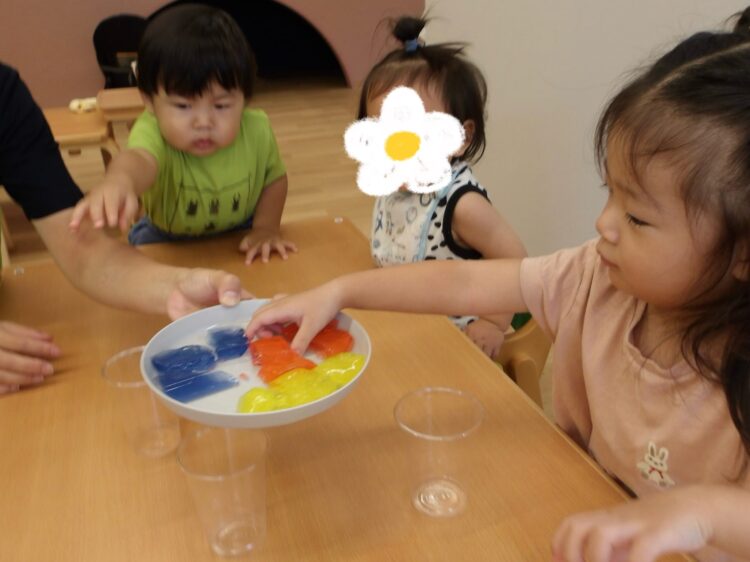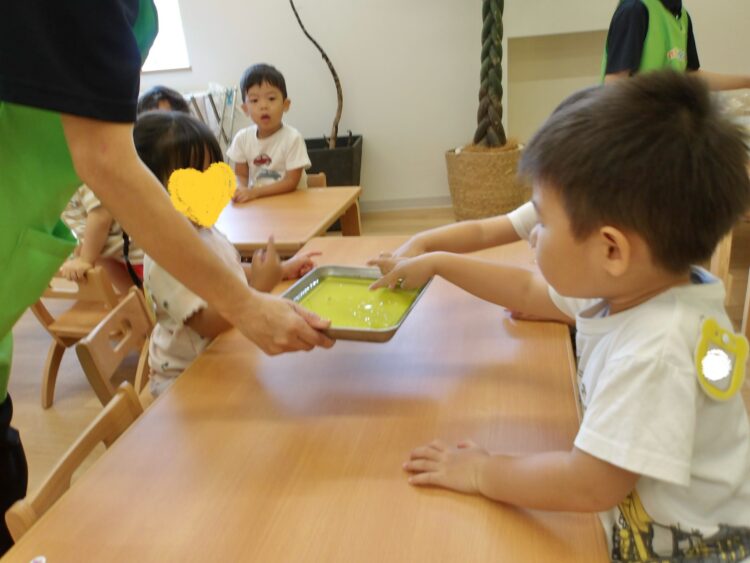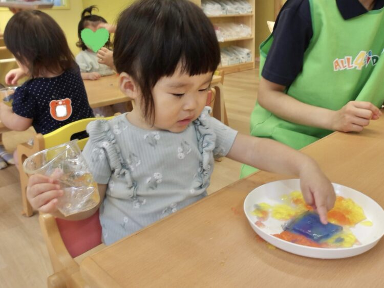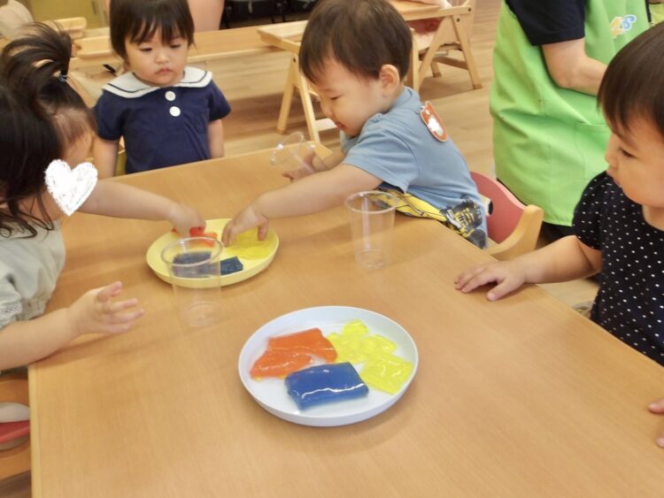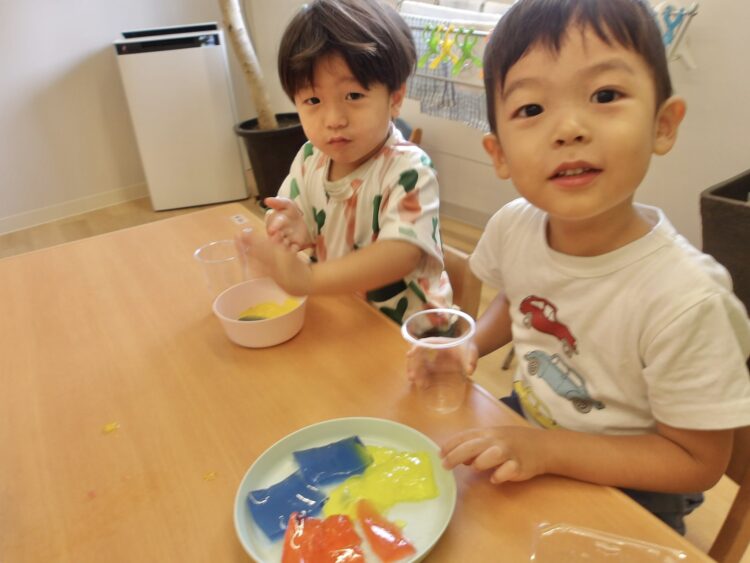 寒天で遊ぶのは今日が初めて…みんな不思議そうな顔で興味津々![]()