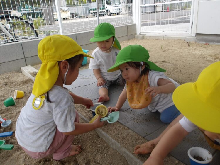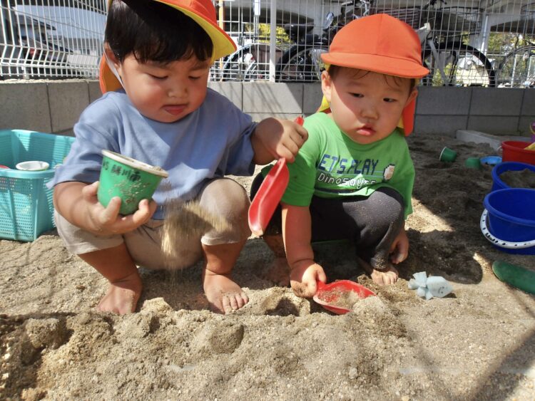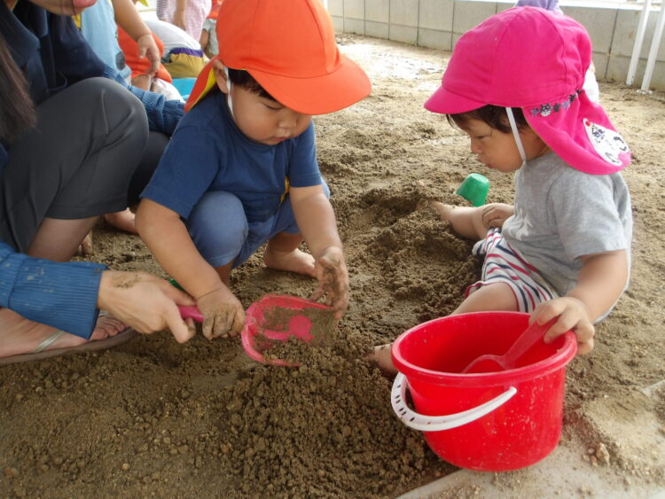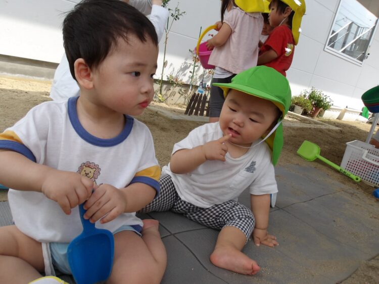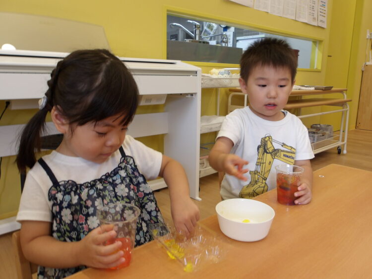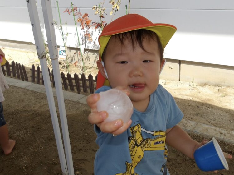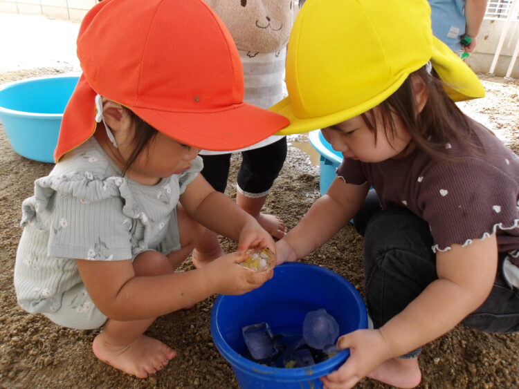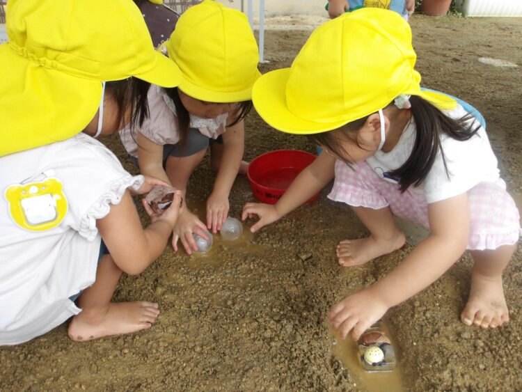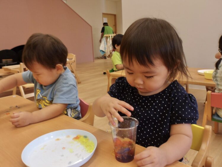 寒天で遊ぶのは今日が初めて…みんな不思議そうな顔で興味津々![]()