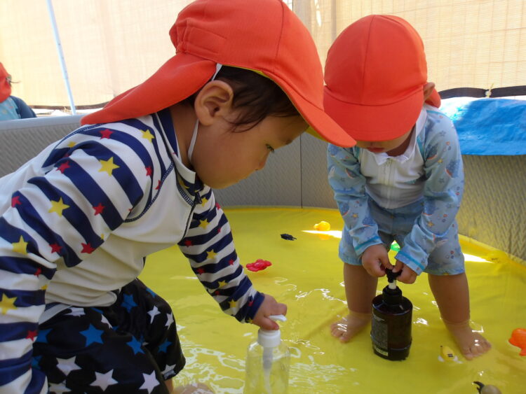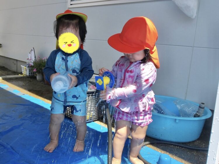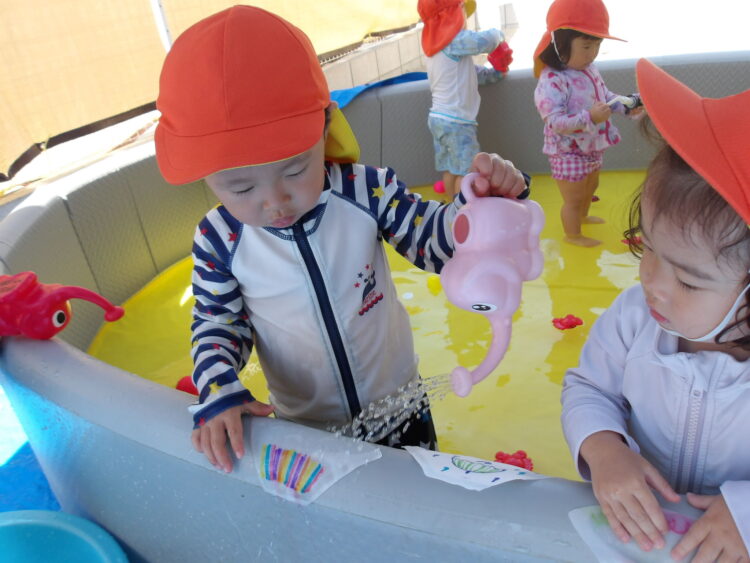 水遊びをする子もお部屋で過ごす子も、それぞれ楽しく遊びましたよ![]()