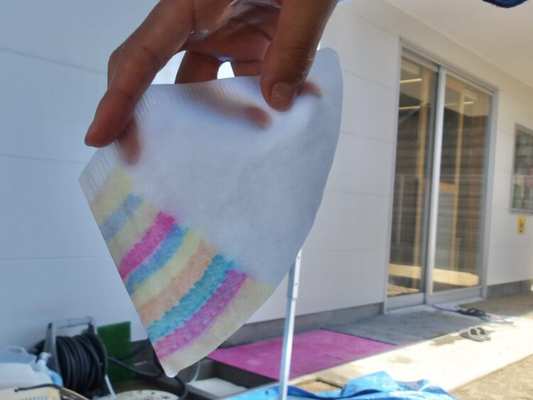 ペットボトルがいっぱいになると、水が噴き出してきます。