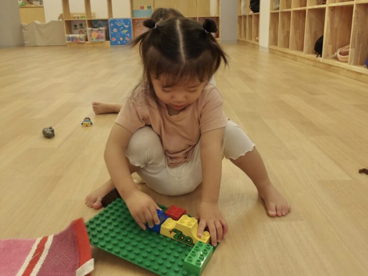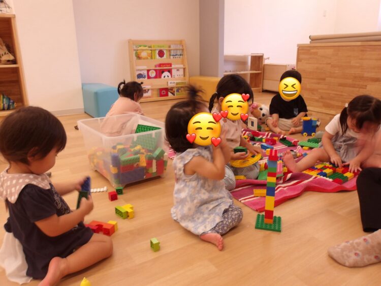お部屋では、うさぎ組さんと一緒にブロック遊び![]()