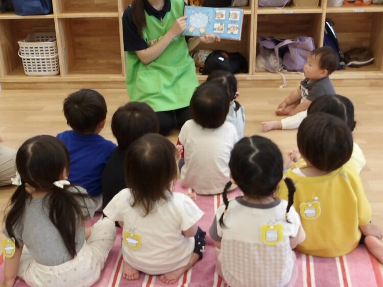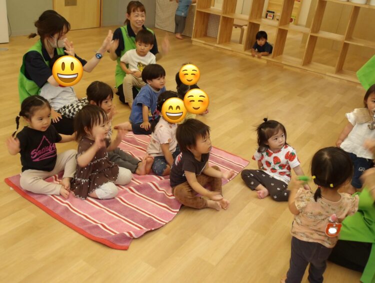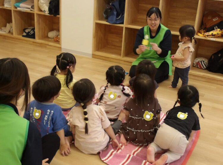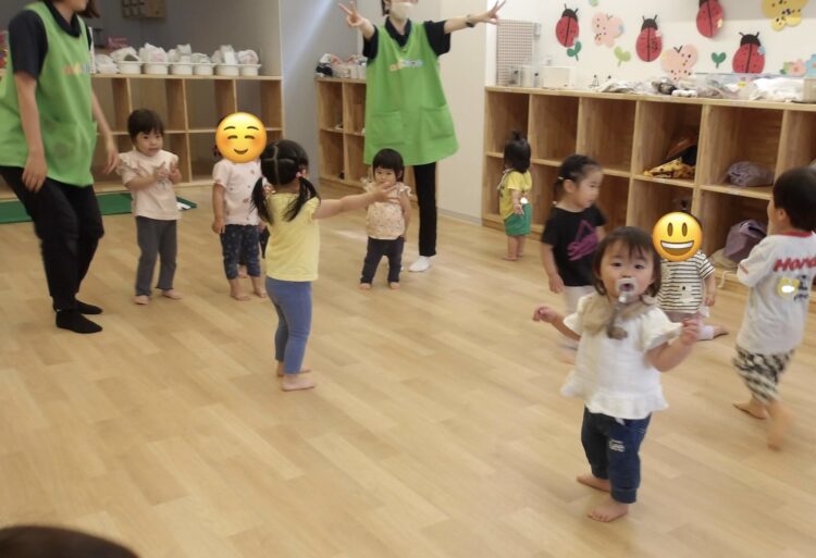 お歌に合わせて体を動かしながら、英語に親しんでいます
