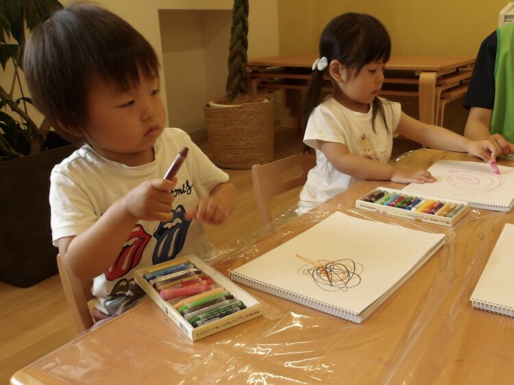 今日は、あひるぐみ・うさぎぐみ揃ってお絵描きをしましたよ