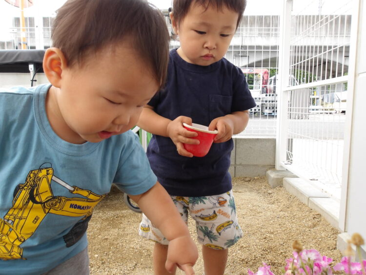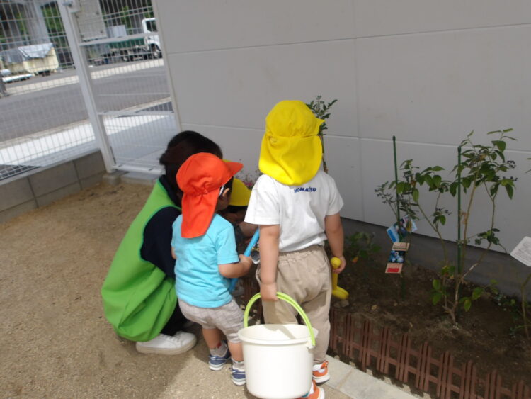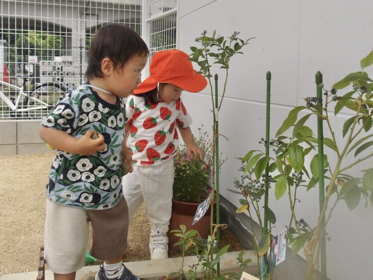 園庭に植えてあるブルーベリーの木や、お花も最近のお気に入りです