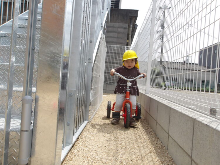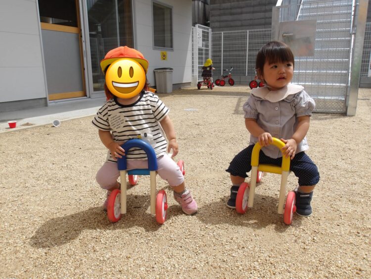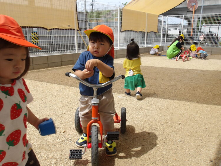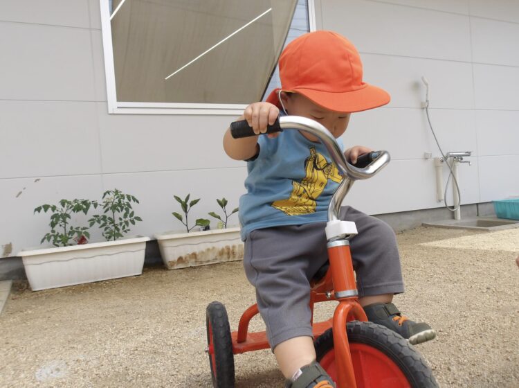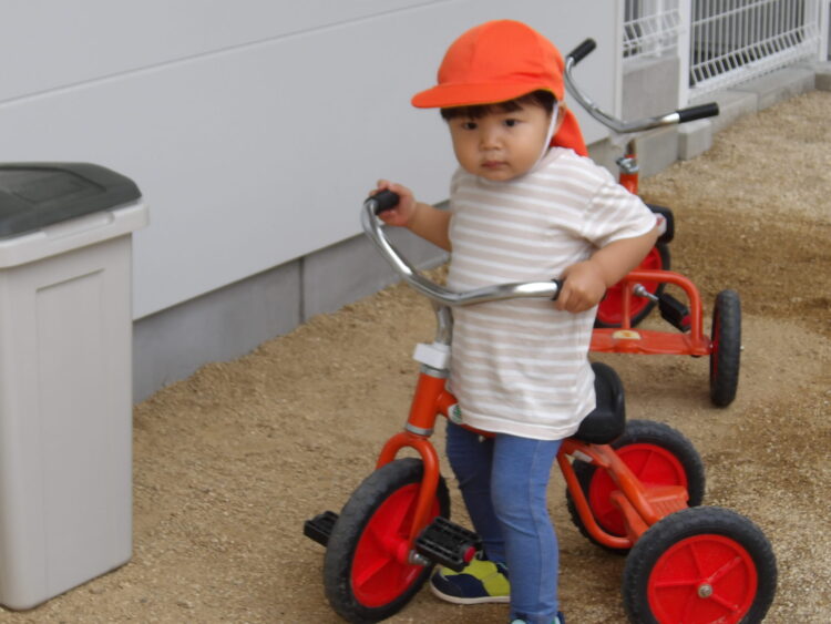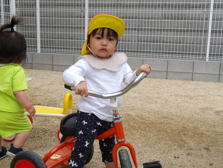 最近は赤ちゃん用の小さい四輪車より、三輪車が人気。