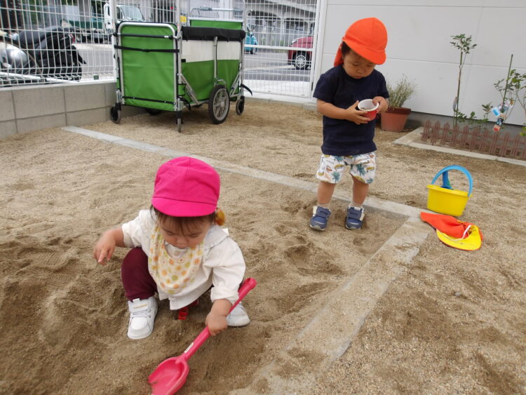 僕たちも一緒に参加したい!…という気持ちを抑えてお外遊びに
