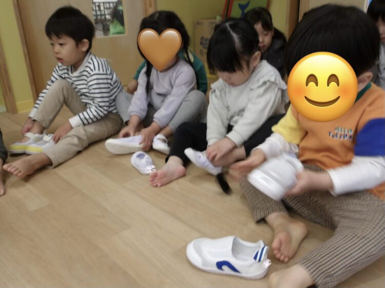 今日から上靴デビューのうさぎ組さん🐰