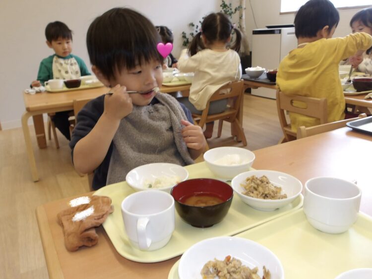 たくさん遊んだ後のお給食を楽しみにしてくれているうさぎ組さん🐰