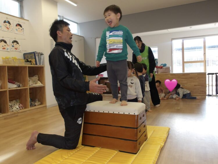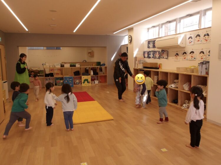 体操の先生が鬼になり、捕まらないように全力で逃げていました![]()