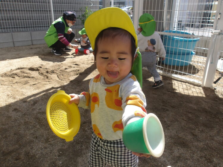 シャボン玉あそびもしました。まてまて〜!と、飛んでいくシャボン玉をお友だちと一緒に追いかける姿がなんとも微笑ましかったです♡