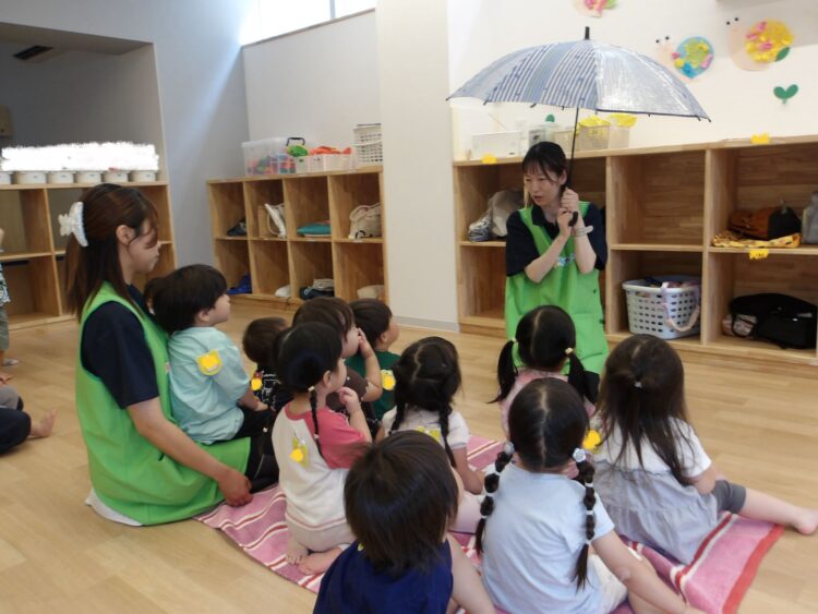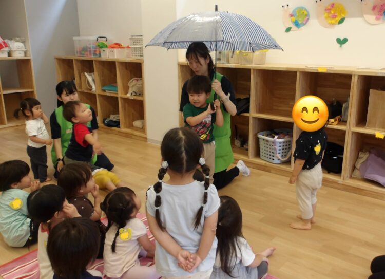上を向いて口を開けたり、バケツを傘に見立てて被ったりしてましたよ☺️