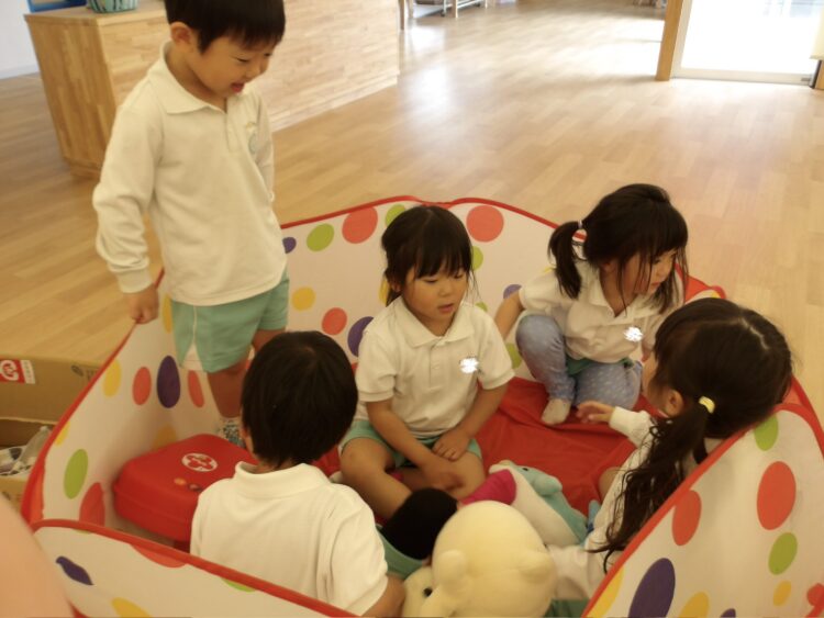 体操の先生が来ると、「きょうはなにするのー!?」と大はしゃぎの幼児さんでしたよ![]()