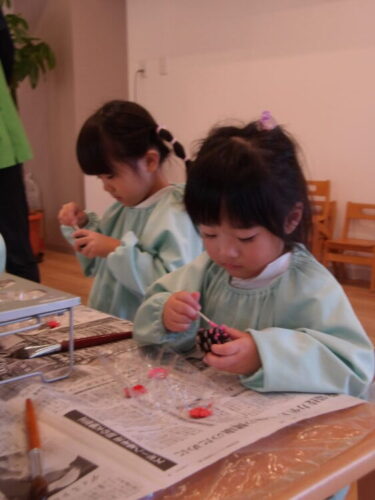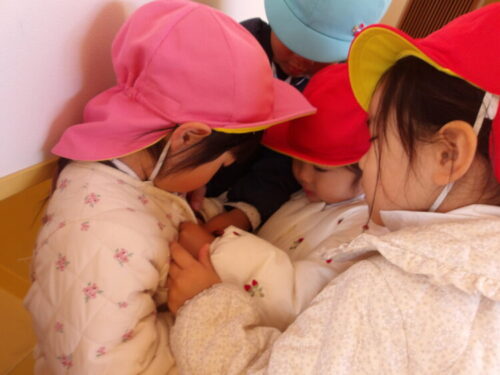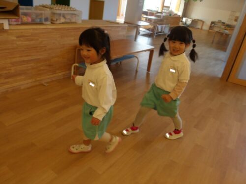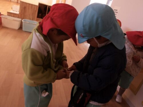 上着のファスナーやボタンがなかなかスムーズにできない子には、お友だちがやり方を教えながら手伝ってくれる姿がありました😊