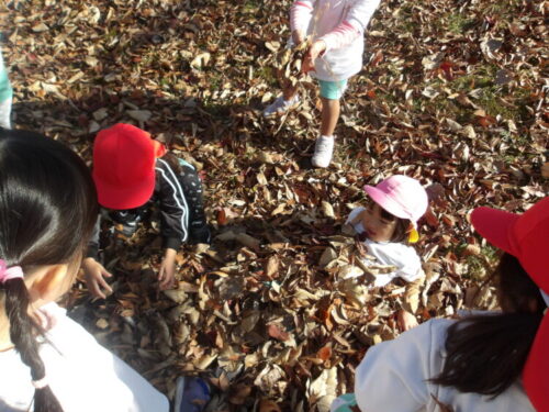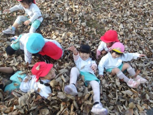みんなで山の方にも遊びに行くと、枯れ葉が大量に!!子ども達も大興奮🤣