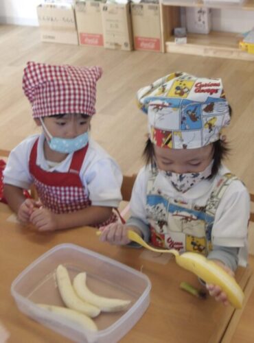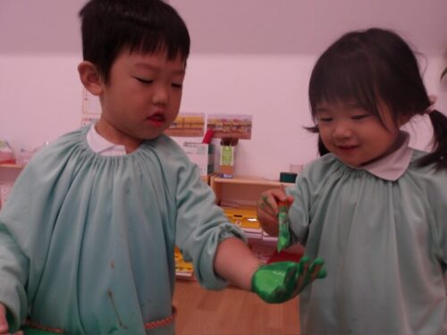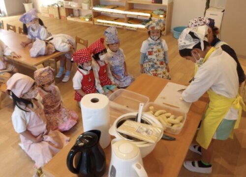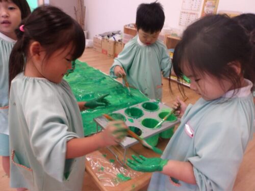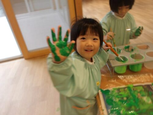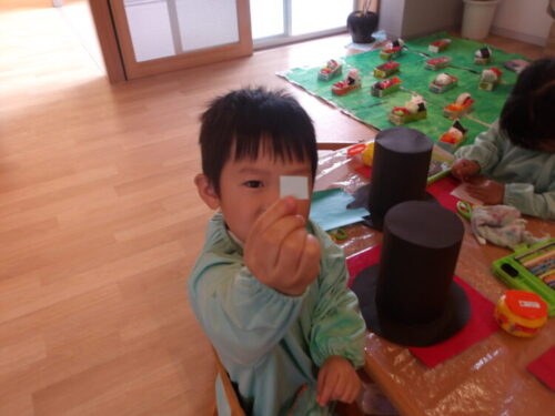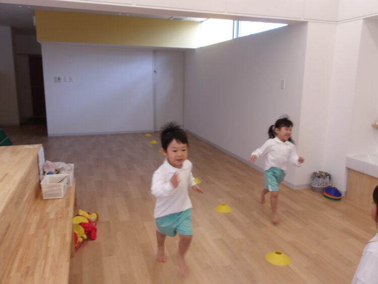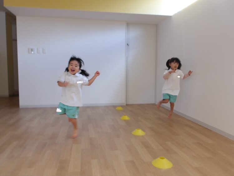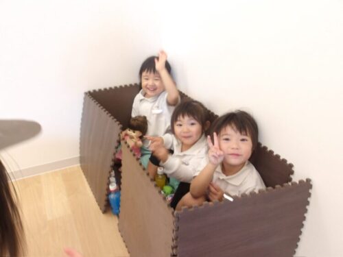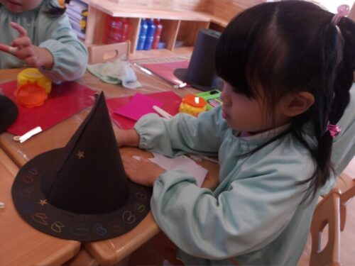 今日はネイティブの先生がお休みだった為.園長先生とENGLISHタイムを楽しんだ後、お楽しみのハロウィンのマント作りに励んで、その後はみんなが大好きな体操タイム💪