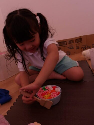 終わった後は、おままごとコーナーを開放して、ビーズでアクセサリーを作ったり、自分の部屋を作ったりして過ごしました😄