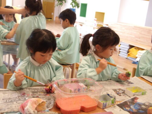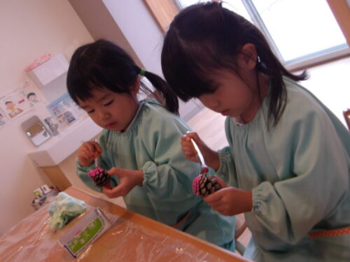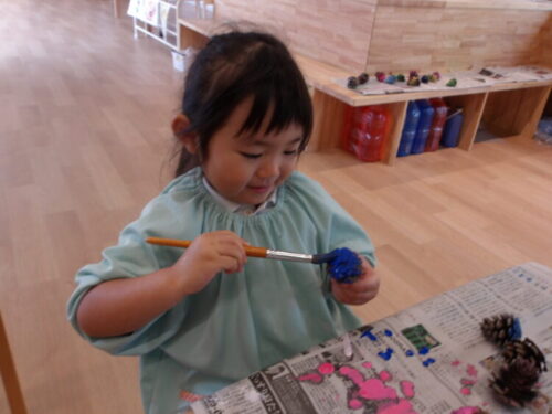 松ぼっくりに塗り塗り🎨