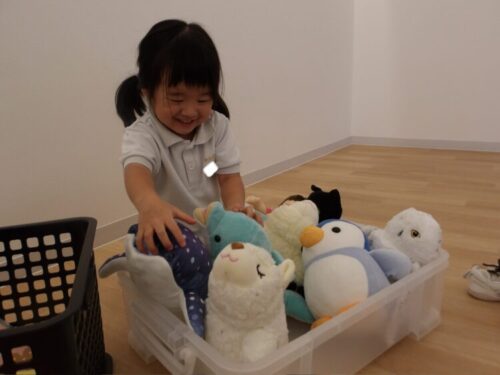 箱カゴをバスに見立ててたくさんのぬいぐるみを乗せて、運転して遊ぶおともだちがいましたよ😄