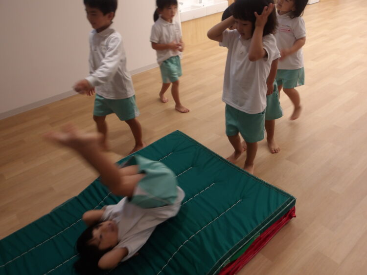 体操教室では後ろ回りと、飛び込み前転の挑戦でした!