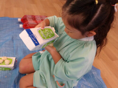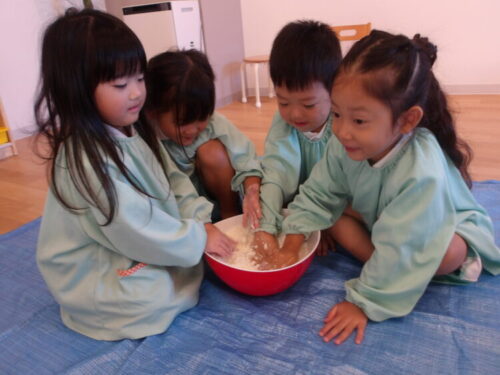 まずは粉の感触をサラサラ〜🎵と触って楽しんだ後に、