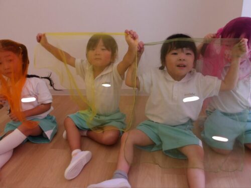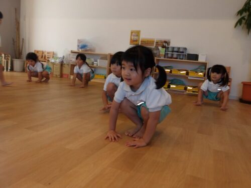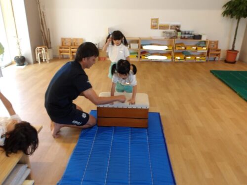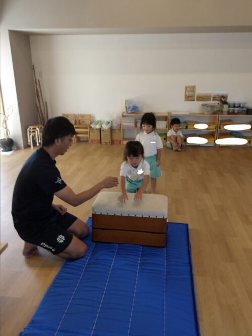 「もうすぐ運動会だね~っ」と、運動会についての会話も楽しみながら、今日は跳び箱を練習しました。