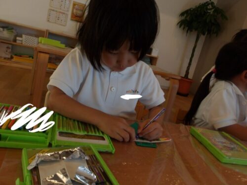 「私も作る!」と年少さんも作り始めたり、現具で型を取って石をトッピングして、美味しそうなケーキを作ったりしていましたよ!