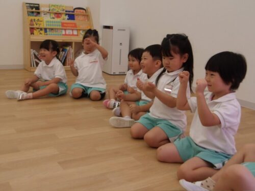 グー✊の音とパー✋の音を聞き分けてのリトミックではいつどっちの音がくるかわからないので子供達も耳を澄ませ楽しそうでした😄