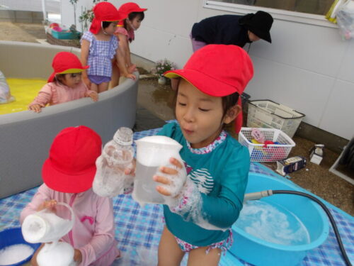 終わってからは今日は園庭に水遊びに行きました!