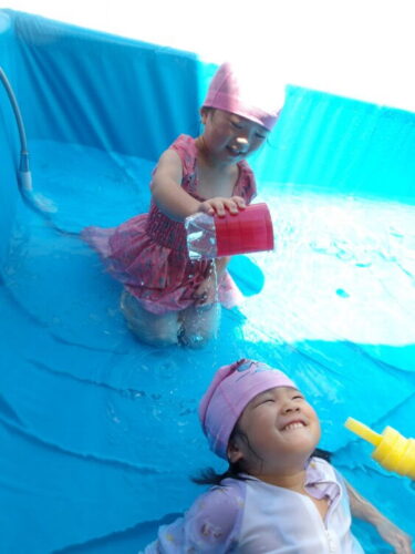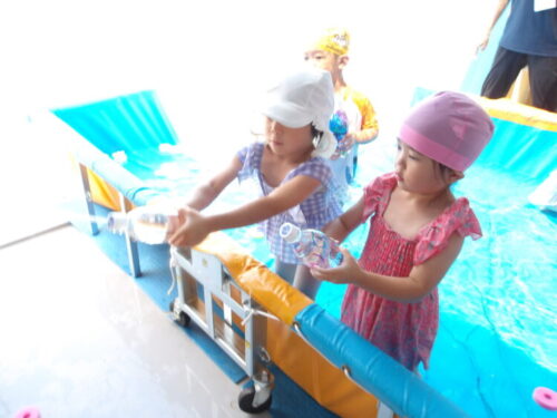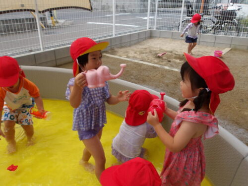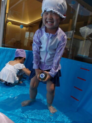 足の内股に挟んで、足の挟む力で水鉄砲の水を出す方法を発見する子も出現して面白かったです😂