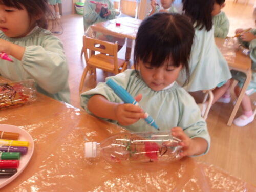 今日は水遊びで使う水鉄砲を作りました😄