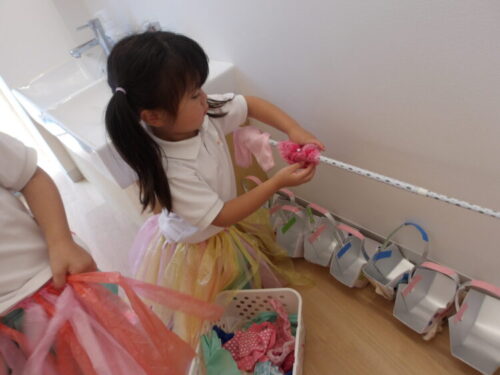 私がママね🤱と役を決め、洗濯干したいと言うのでつっかえ棒をつけてあげると、干して遊んだり、