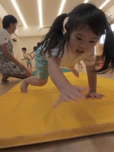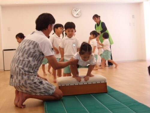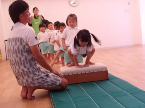 体操教室では鉄棒が終わり、次は跳び箱へ!