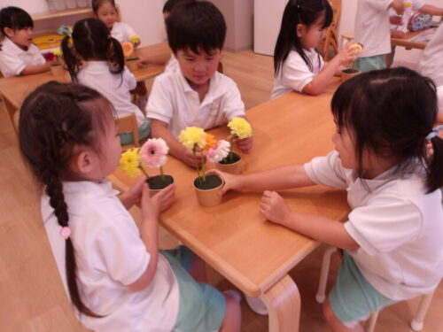 前回に出てきたガーベラも今回花の名前を質問してみると覚えていて答えてくれるお友達もいました😄